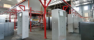 弗萊仕公司采用全自動大型噴塑線,由封閉循環式掛架、傳動系統、回轉烘烤系統、靜電粉末噴涂房、粉末收集系統、前處理系統等一系列組成,更快的做到產品表面噴塑處理。