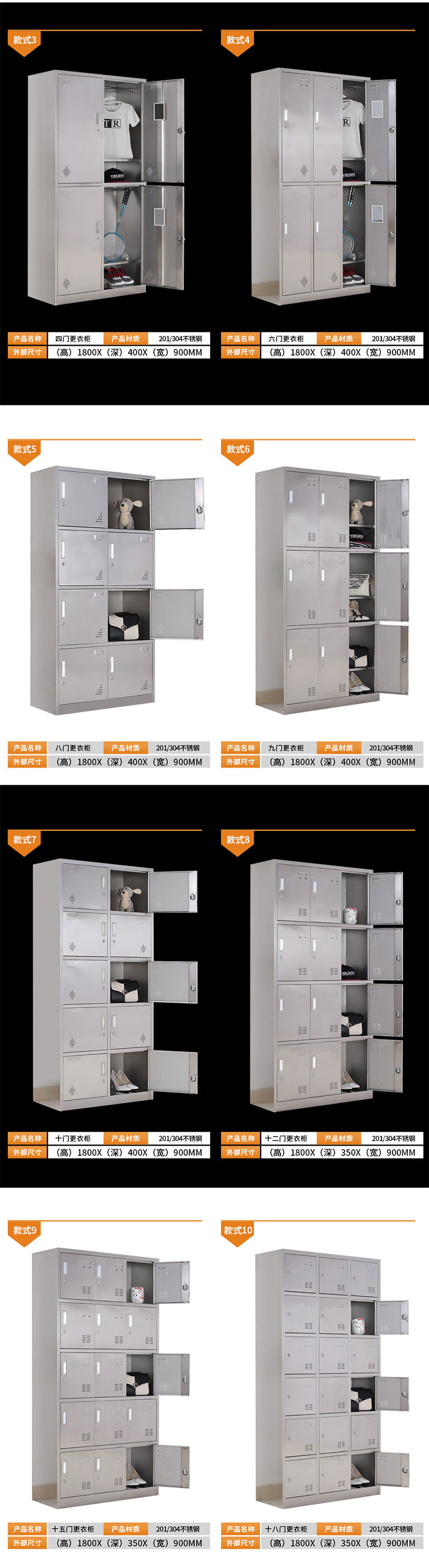 顏色:201/304不銹鋼 規格:2門/3門/4門/6門/8門/9門/10門/12門/15門/18門/24門/32門 用途:適用于健身房,工廠,學校,公司,企業單位,洗浴等