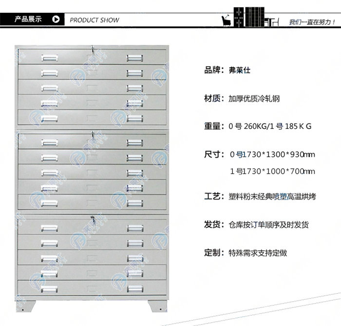 洛陽弗萊仕金屬制品有限公司是一家集科研,設計,制造,銷售,安裝,售后服務于一體的鋼制家具專業生產企業。公司現擁有包括工業安防柜,實驗室家具,校用設備,密集架,鋼柜,不銹鋼定制六大核心系列,能夠滿足學校,醫院,大型國企的一站式配套工程。公司自成立以來,始終堅持“高科技、高質量、高服務”的方針,以專業,獨特的創新理念,在全國知名的鋼制家具生產基地迅速崛起。產品主要銷往北京、上海等全國20多個省市.得到了廣大用戶的肯定和贊賞,享有較高的聲譽。經過不斷努力及完善,公司擁有先進的生產設備,強大的規模生產能力,并擁有一批高素質的生產管理人員和技術人員,及合理健全的售后服務體系,并把追求卓越、引領時尚的奮斗目標貫穿于生產整個過程。