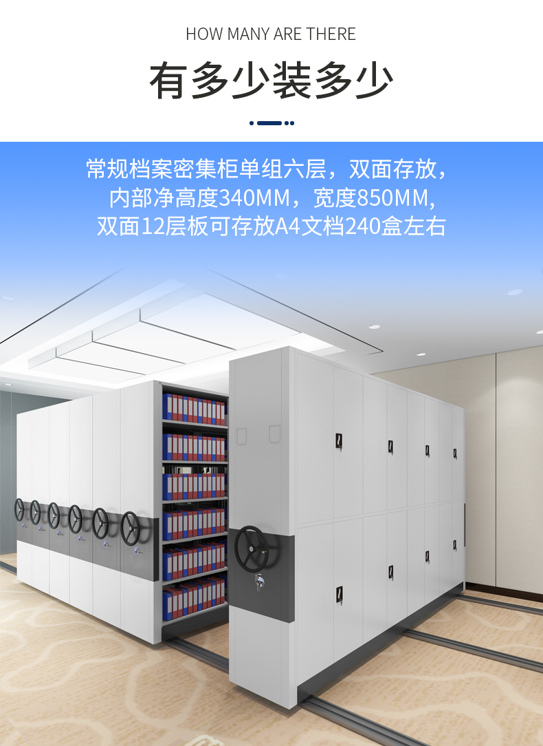 顏色:灰白色 規格:可根據客戶實際情況定制 用途:適用于政府機關單位、公司、學校、醫院等檔案室。